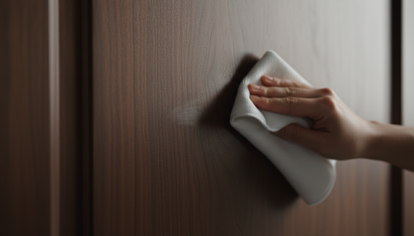 Натуральное дерево — материал «живой» и капризный. Шпонированные двери и изделия из массива чувствительны к влаге и прямым солнечным лучам. Главное правило здесь — исключить избыток воды. Для очистки лучше использовать едва влажную салфетку из микрофибры, а затем обязательно вытирать поверхность насухо.