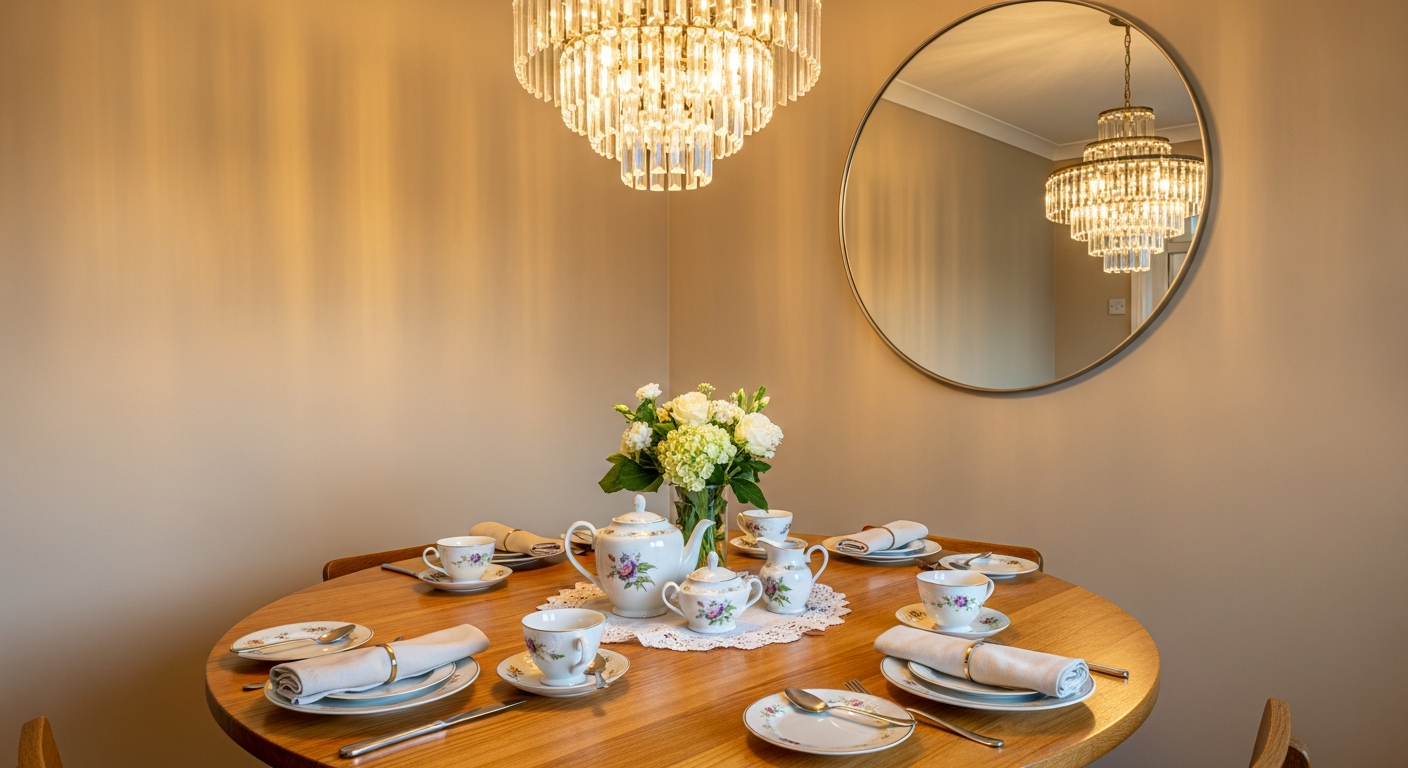 - Вечерний сценарий: Повесьте зеркало за торшером, настольной лампой или рядом с группой свечей. Отраженный свет создаст невероятно уютную, мягкую и многослойную атмосферу.