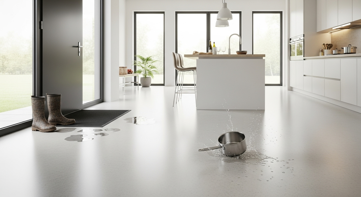 Пол для сложных зон: SPC, кварцвинил или ламинат — что выдержит испытание кухней?