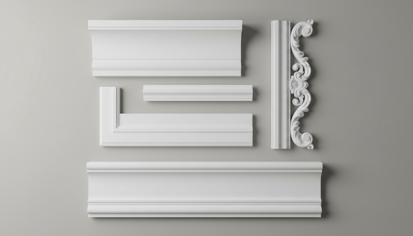 Прежде чем приступать к монтажу, необходимо определиться с составом декора. Основу декоративной композиции обычно составляют карнизы, которые оформляют переход от стены к потолку, и молдинги, используемые для создания настенных рамок или разделения зон. Для оформления пола идеально подходят плинтусы из ударопрочного полимера.