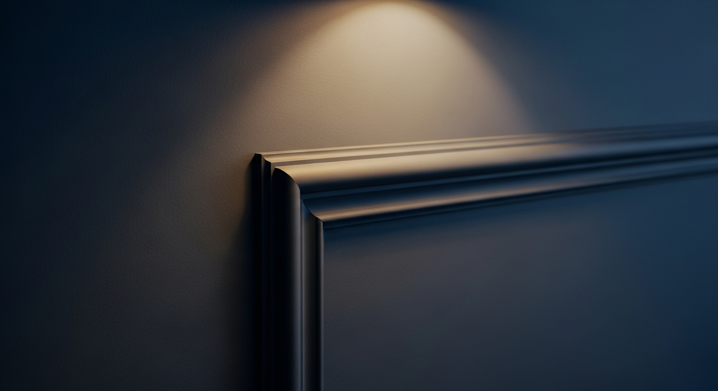 - Какой эффект это дает? Декор перестает быть "наклеенным" украшением и становится неотъемлемой частью стены, ее архитектурным рельефом. Вместо цвета на первый план выходит игра света и тени на гранях молдинга. Это выглядит очень тонко, дорого и современно.