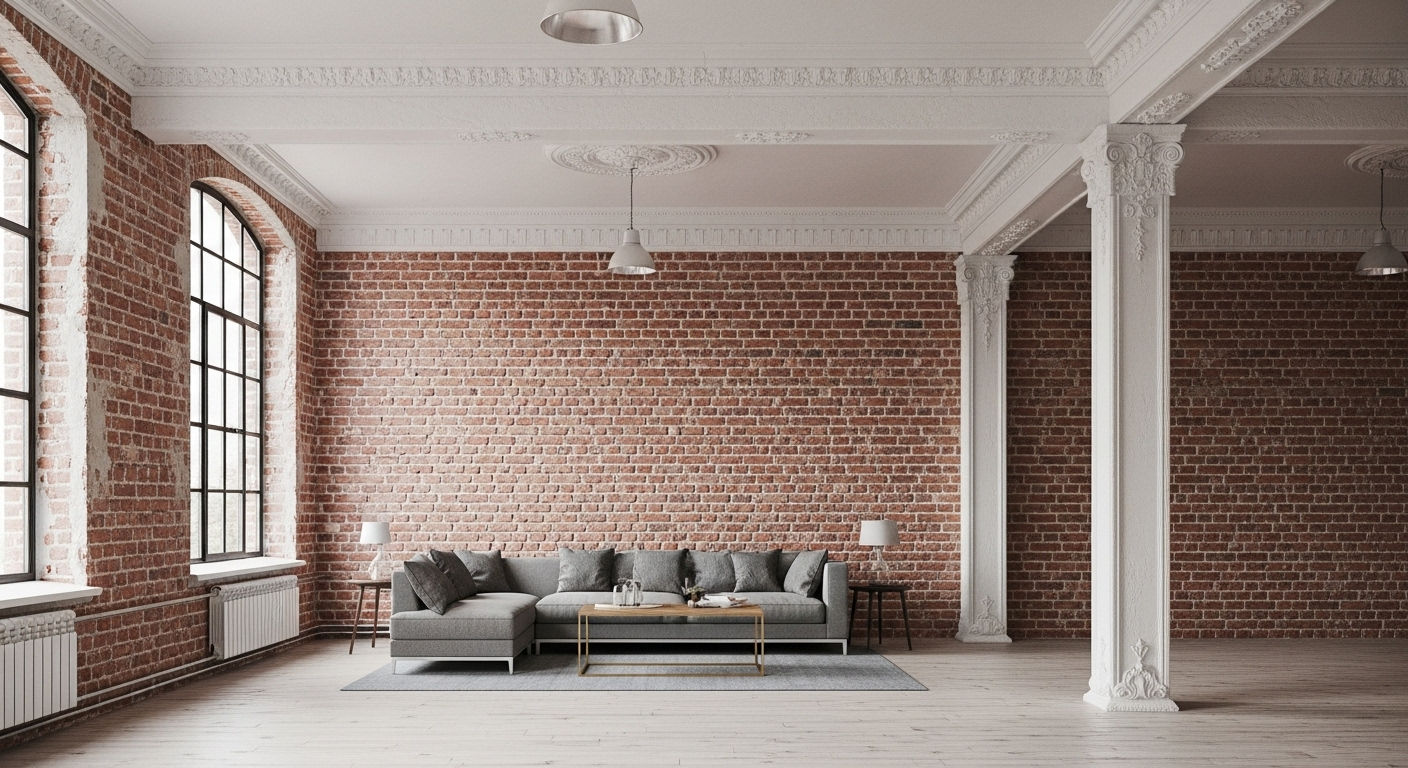Даже в брутальных, индустриальных интерьерах есть место для классической лепнины. Сочетание грубой кирпичной кладки или бетонной стены с изящным классическим потолочным карнизом или розеткой создает мощный и очень модный контраст стилей. Этот прием, называемый эклектикой, делает интерьер сложным, многослойным и по-настоящему уникальным.