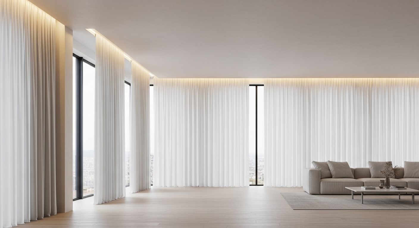 В современном дизайне интерьера ценится чистота линий и визуальная легкость. Классические настенные карнизы-штанги и громоздкие потолочные планки уходят в прошлое, уступая место более элегантному и минималистичному решению — скрытому карнизу. Этот прием позволяет "спрятать" все технические детали крепления штор, создавая потрясающий эффект, будто ткань парит в воздухе, струясь прямо из потолка.