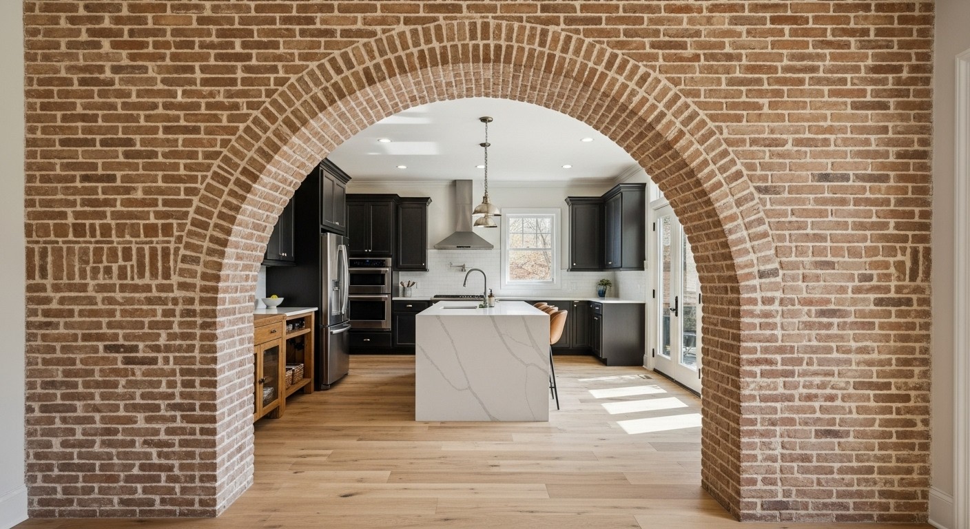 - Как это работает? Облицовка дверного или арочного проема клинкером визуально отделяет одно пространство от другого (например, кухню от гостиной).