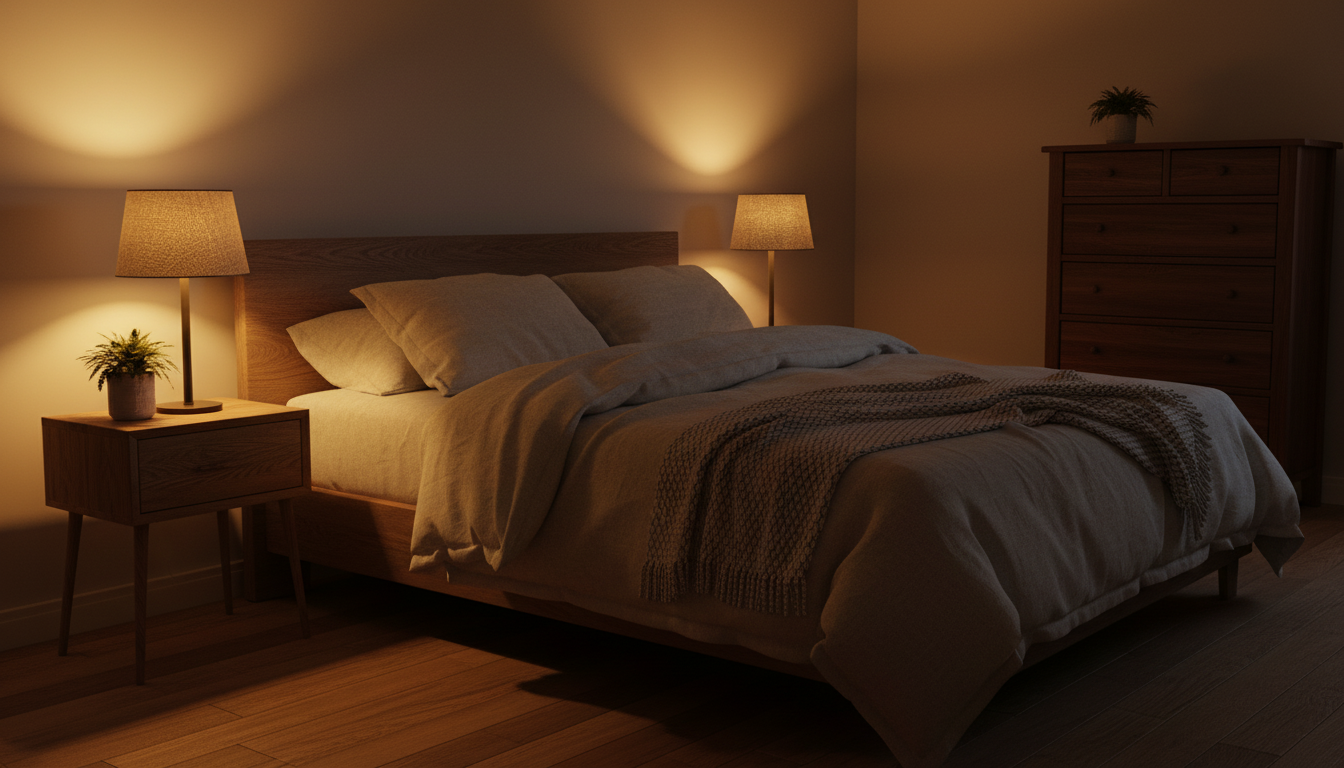 - Эффект: расслабление, подготовка ко сну, визуальное «согревание» пространства.