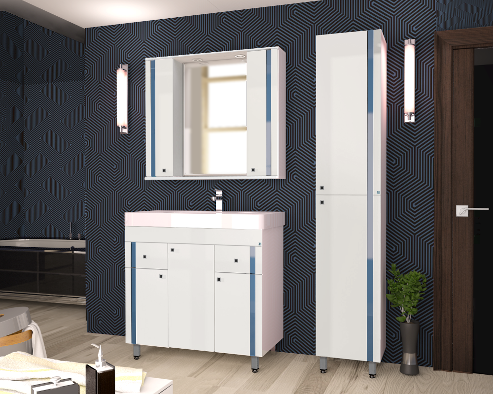 Тумба с раковиной Style Line Марелла 60 напольная, 2 ящика, Люкс антискрейтч, белый глянцевый, PLUS