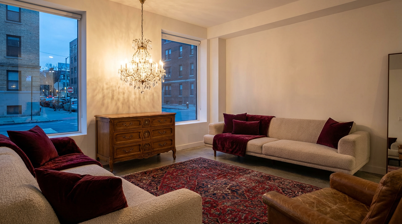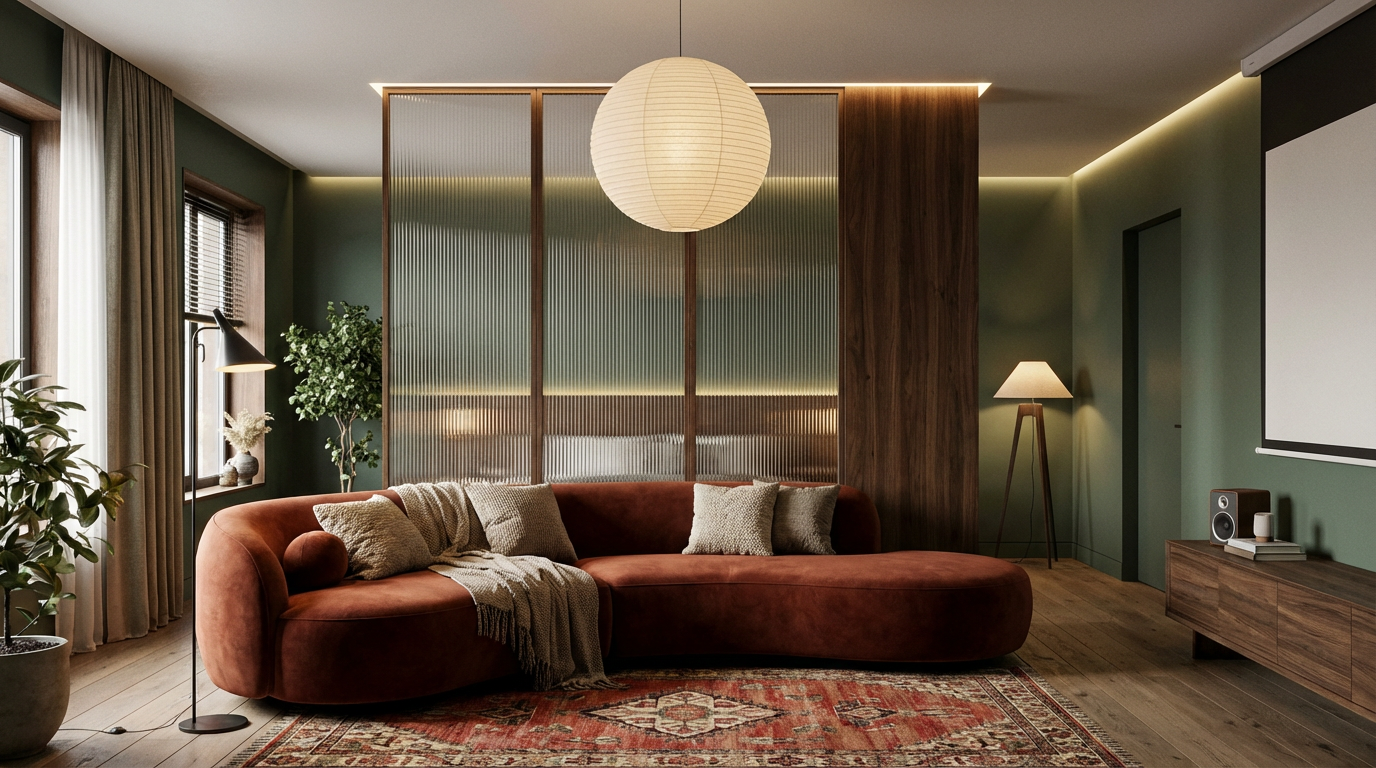 Сложные фактуры: Многослойность — наше всё. Бархат, букле, грубый лен, дерево и камень миксуются в одном пространстве, делая его живым и интересным.