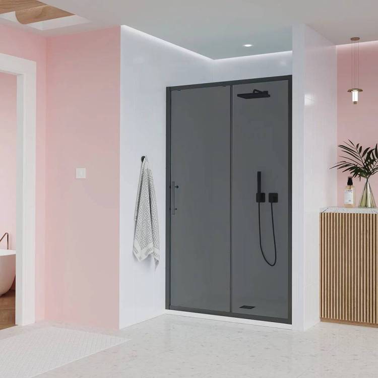 Конструкция раздвижного типа позволяет экономить пространство, а универсальная ориентация делает монтаж удобным в любом помещении. Дверь регулируется по ширине (970–1010 мм), что упрощает установку в нишу или на поддон.